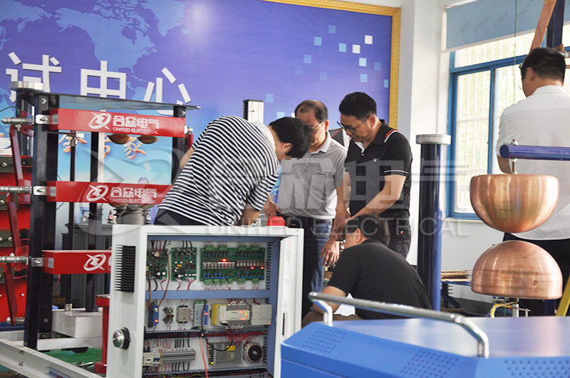 2018年6月5日,來自寶島臺灣的某電機(jī)公司客戶到訪武漢市合眾電氣,考察驗收沖擊電壓發(fā)生器、變壓器測試系統(tǒng)等設(shè)備。在各部門負(fù)責(zé)人及技術(shù)人員的陪同下,臺灣客戶參觀考察了公司生產(chǎn)車間,產(chǎn)品研發(fā)測試中心,對我司沖擊電壓發(fā)生器進(jìn)行了現(xiàn)場測試驗收。對客戶提出的各類問題,公司領(lǐng)導(dǎo)和相關(guān)技術(shù)人員均作出了專業(yè)細(xì)致的解答。