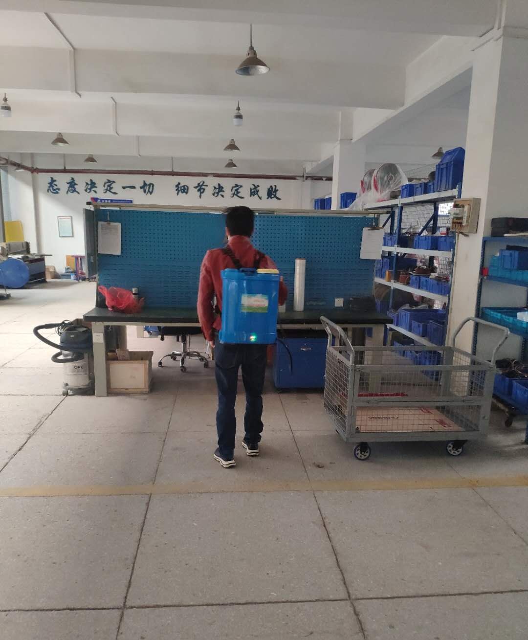 在正式復(fù)工之前,公司安排了專業(yè)的消毒人員,對(duì)公司辦公區(qū)域,生產(chǎn)制造車間,辦公走廊,樓梯間,包括公司用車,整個(gè)公司廠區(qū)的里里外外進(jìn)行了全面的消毒清潔工作。