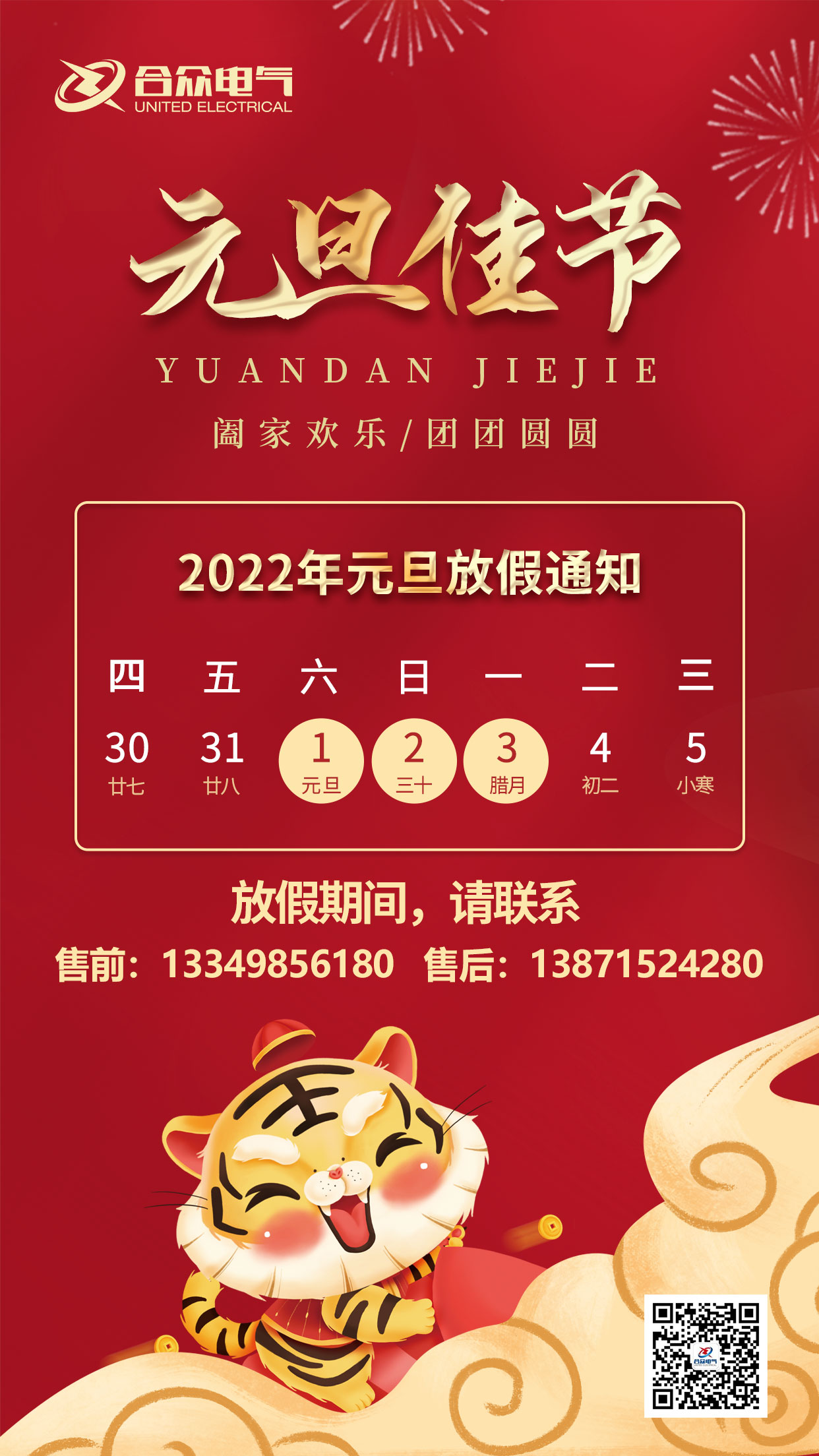 合眾電氣2022年元旦福利發放與放假通知