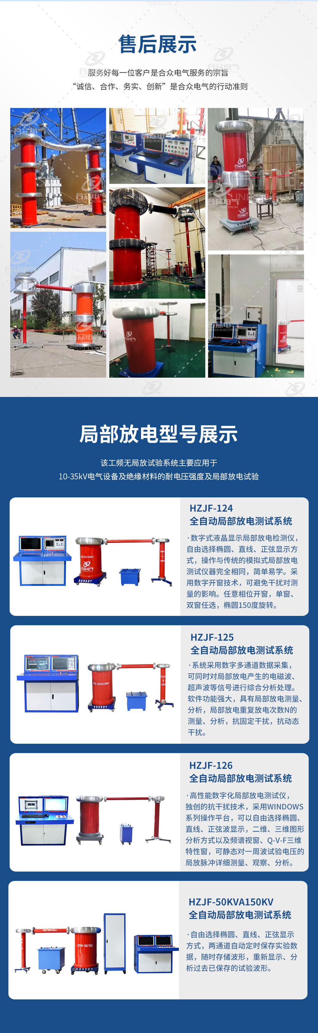 合眾電氣作為無局放耐壓試驗裝置生產制造的老廠家,研發技術底蘊深厚,售后服務體系完備完善,目前已為千余家客戶提供過無局放耐壓試驗裝置相關售后服務。