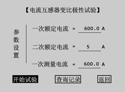 一次測量電流:在互感器綜合特性測試儀變比極性試驗(yàn)時(shí),電流互感器一次側(cè)實(shí)際施加的電流,內(nèi)置升流器升流范圍為0~600A。按被試品的比值大小來設(shè)定一次測量電流,如果一次額定電流超過600A,可將一次測量電流設(shè)為400A~600A。