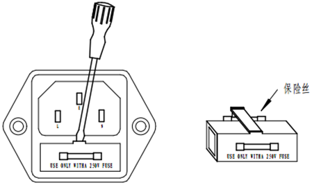 警告:1、為了避免觸電事故的發(fā)生,在更換保險絲之前請把儀器上的電源插頭拔掉,確保儀器上無電源電壓。