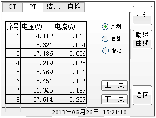 智能互感器測(cè)試儀的勵(lì)磁數(shù)據(jù)