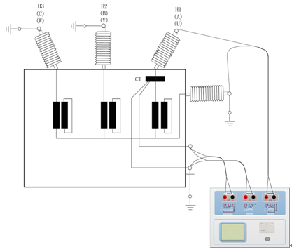 注意:一次端子H1不能接地,否則一次側(cè)都接地了,則智能互感器測(cè)試儀不能獲取正確結(jié)果。