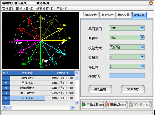 GPS對時:將微機繼電保護測試儀的系統時間同GPS衛星時間保持同步,該功能必須在完成GPS連接后才能實現。