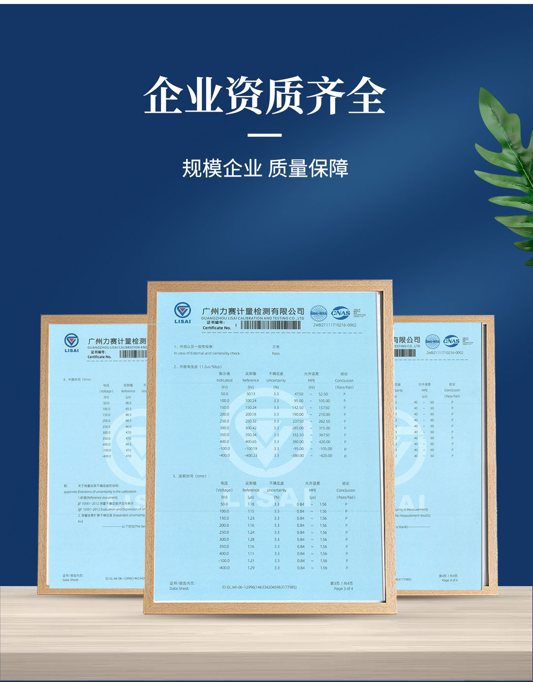 波頭時間:1.2±30%μs,波尾時間:50±20%μs,過沖:小于5%,效率:不低于90%?!?.2/50μs標準雷電沖擊電壓全波,效率大于90%。