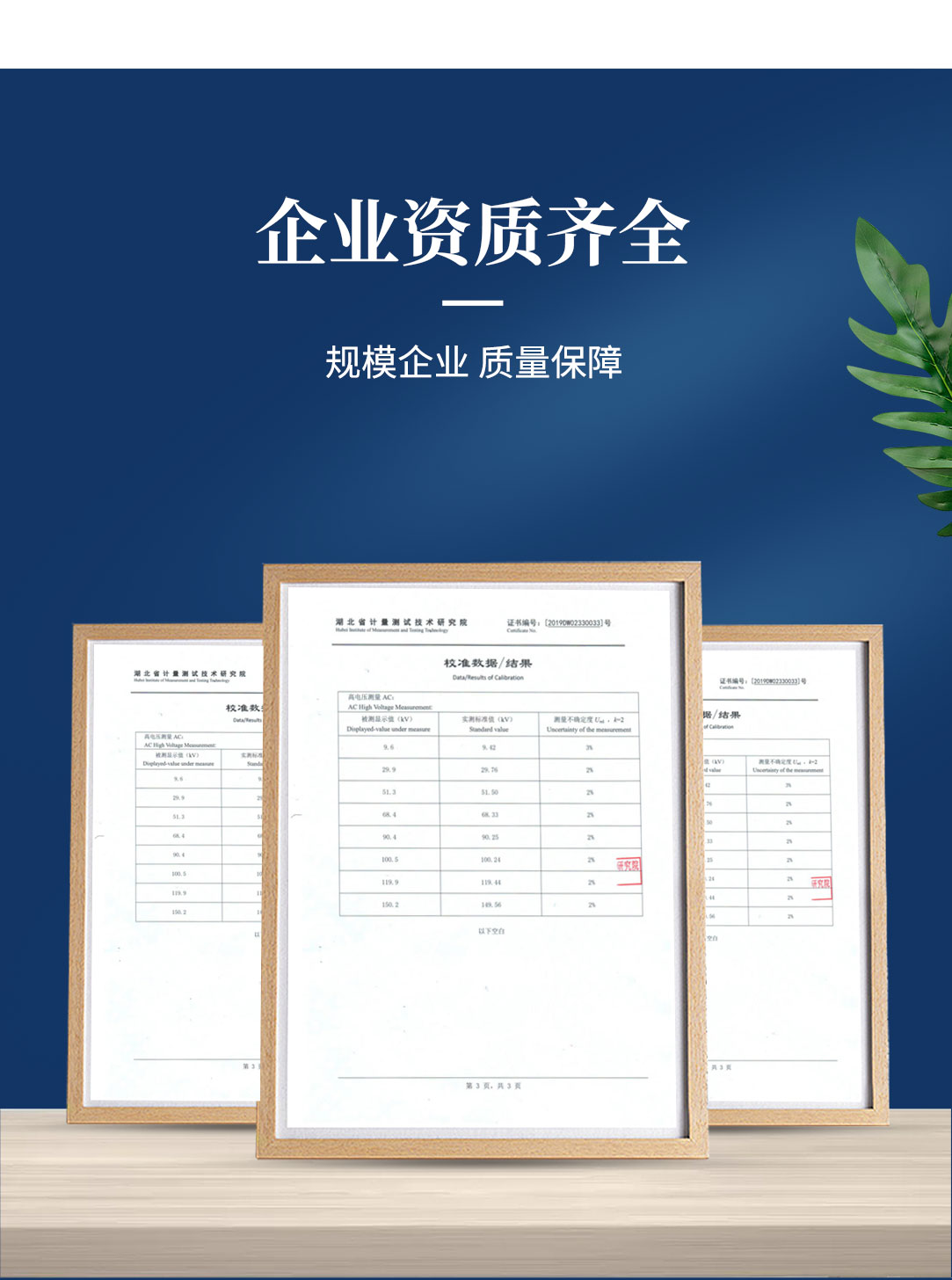 11、六項保護使用更安全:高壓電壓保護、低壓電壓保護、高壓電流保護、低壓電流保護、高壓過壓保護、高壓閃絡保護;