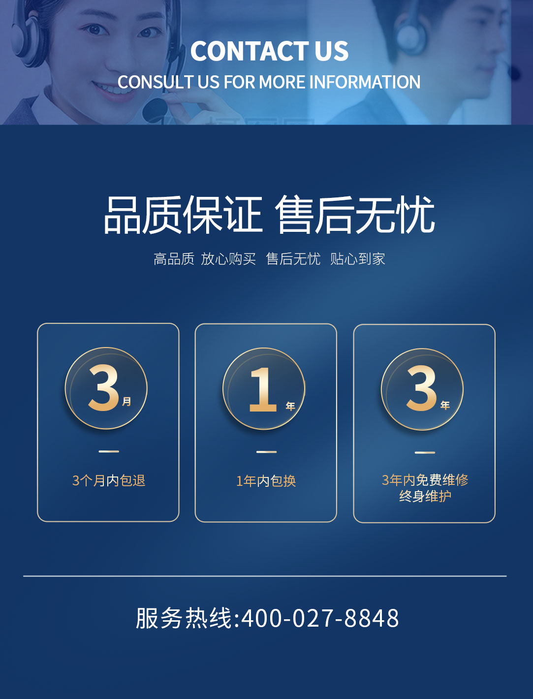 我們的售后服務承諾是:“3個月內包退,1年內包換、3年免費維修,終身維護”。在未來的日子里,我們將一如既往的堅持三類星級服務!