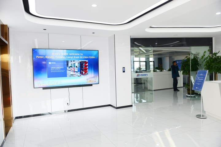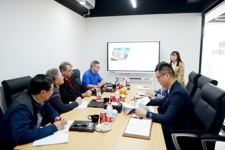 客戶一行來到我司全新的工業園區,在總經理、外貿業務部經理及相關人員的陪同下,參觀了我司新的辦公樓、產品展示廳以及配套設施。在會議室,通過全方位的數字化展示,客戶對我司新園區的規劃,高標準新廠區的建設,以及后期生產、辦公配套設施設備的升級完善有了進一步的了解。